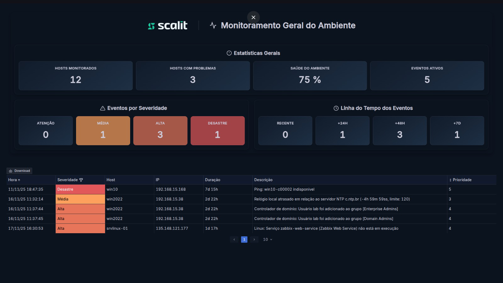 A SCALIT oferece soluções de monitoramento personalizadas para ambientes críticos, onde falhas não são apenas incidentes técnicos, são riscos reais para o negócio.